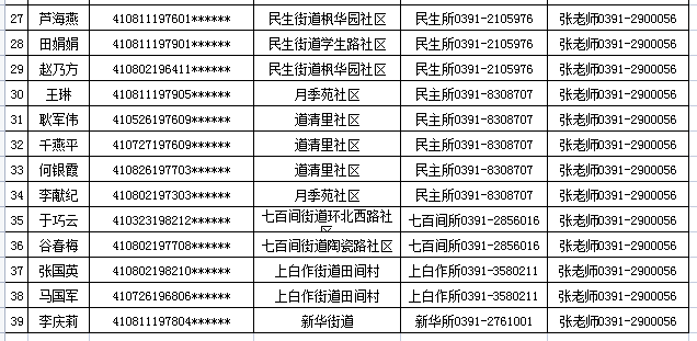 根据人社部《就业服务与就业管理规定》、《河南省就业登记和失业登记管理暂行办法》(豫人社〔2011〕23号)文件规定,经过居民本人申请、社区劳保站初审,对辖区39名(详见下图)拟登记的失业人员情况予以公示,公示3天。